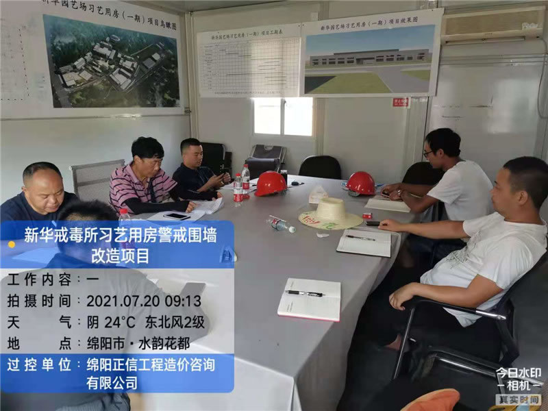 【綿陽(yáng)正信?造價(jià)部消息】2021年7月20日上午9:13,建設(shè)單位在綿陽(yáng)市水韻花都就新華戒毒所習(xí)藝用房警戒圍墻改造項(xiàng)目,展開(kāi)會(huì)議。